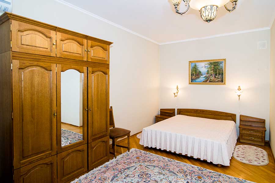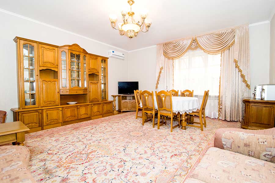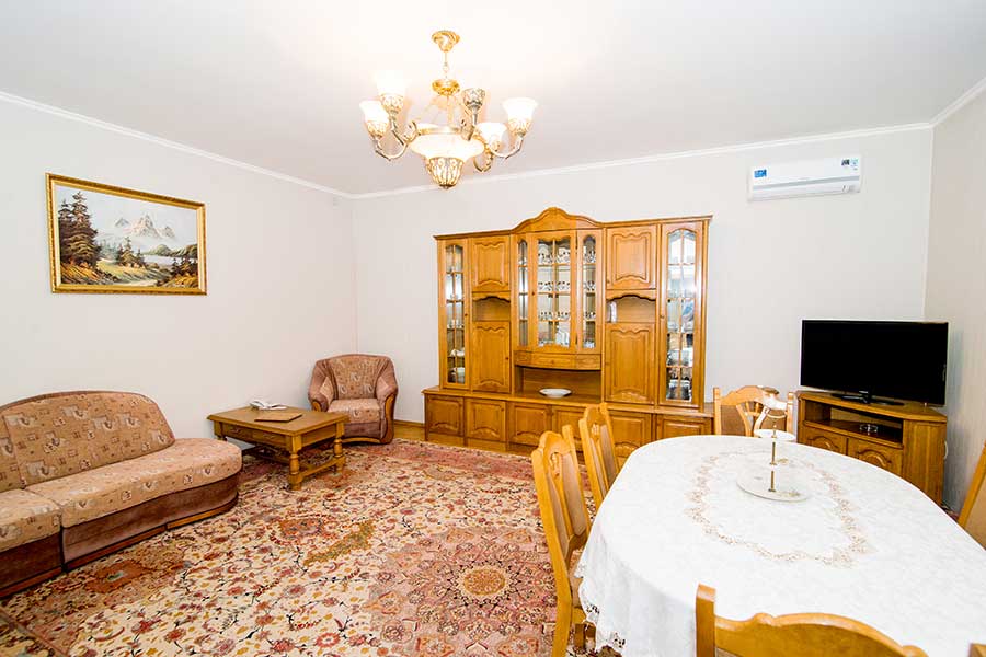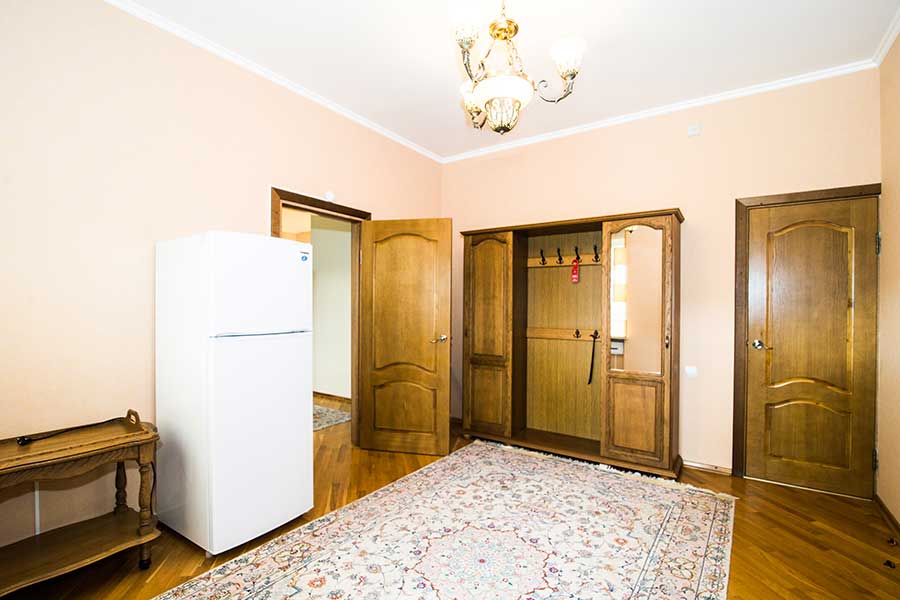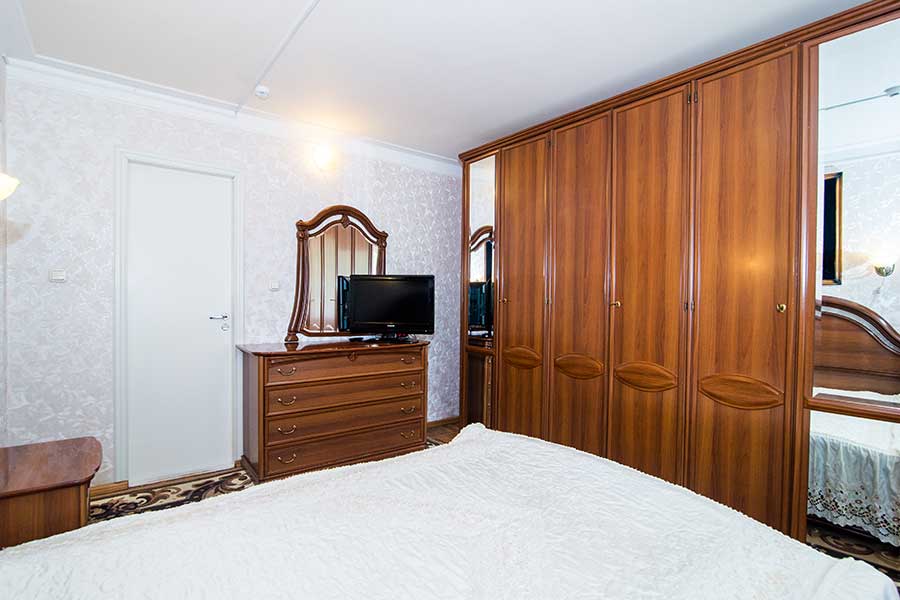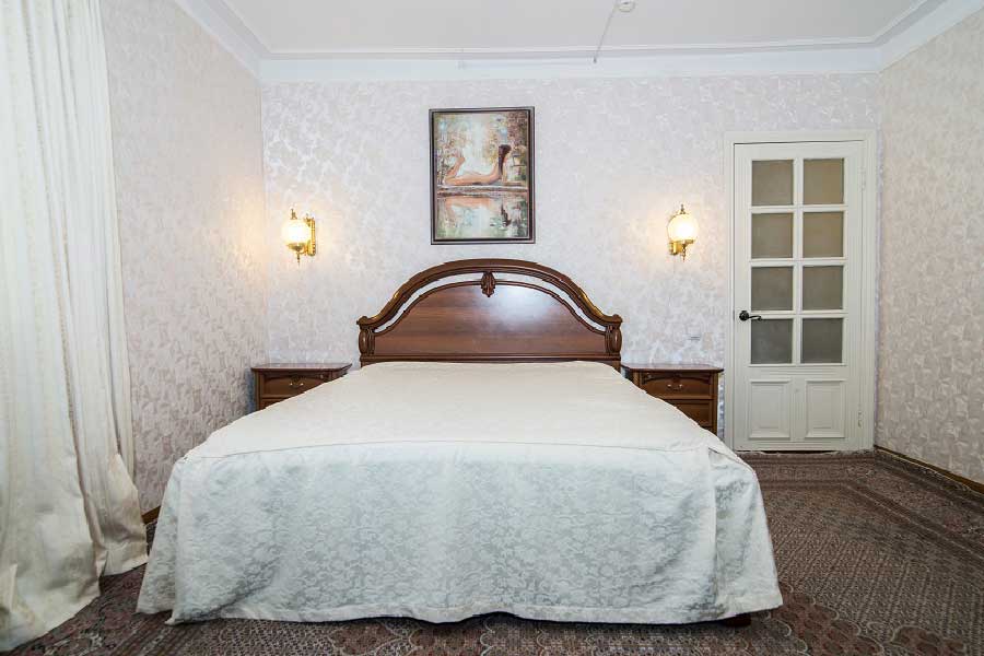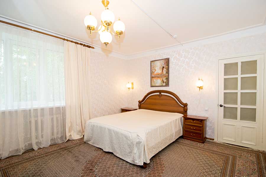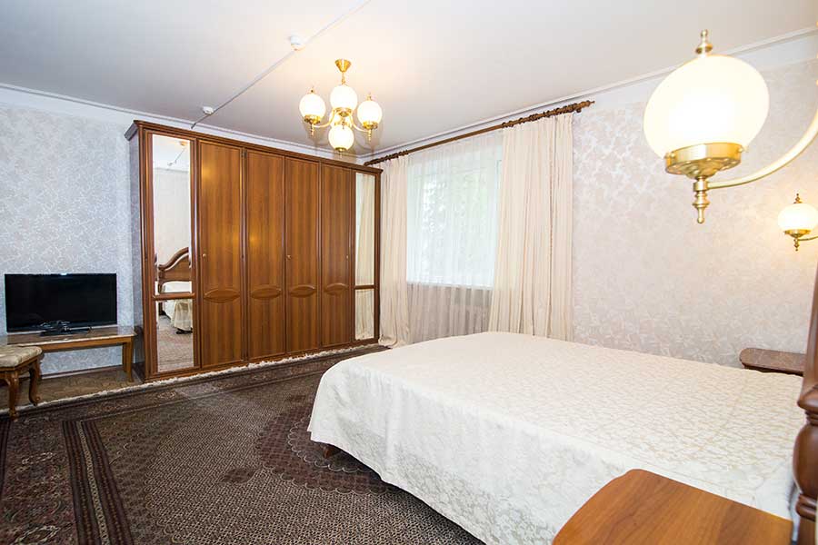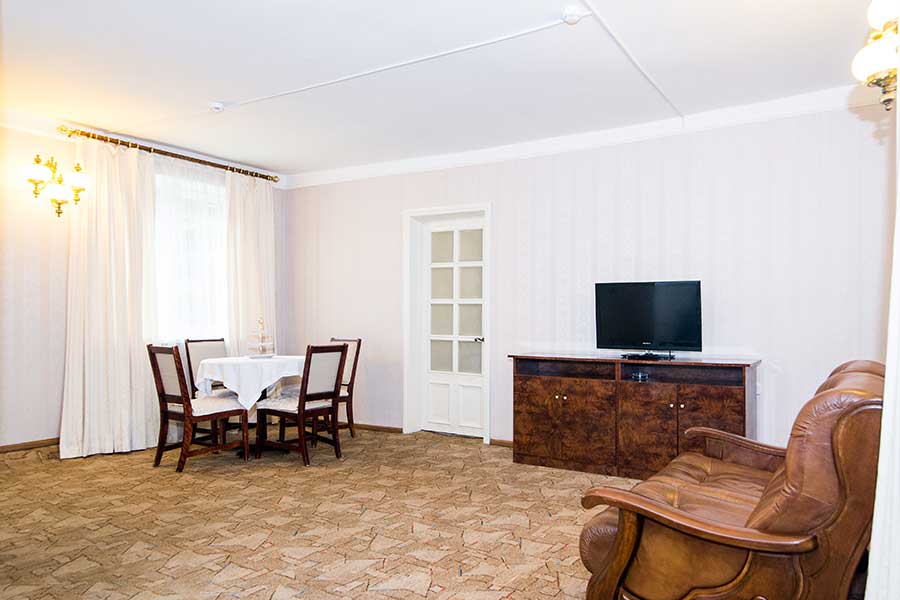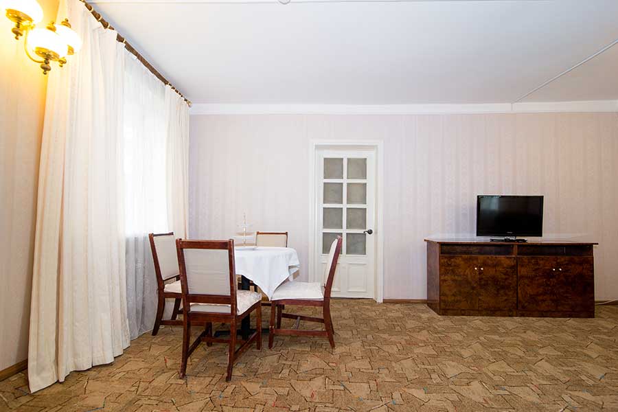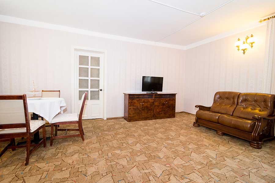 Двухкомнатный номер для комфортного размещения 2-4 человек. В гостиной расположен диван, в спальной комнате двуспальная кровать.