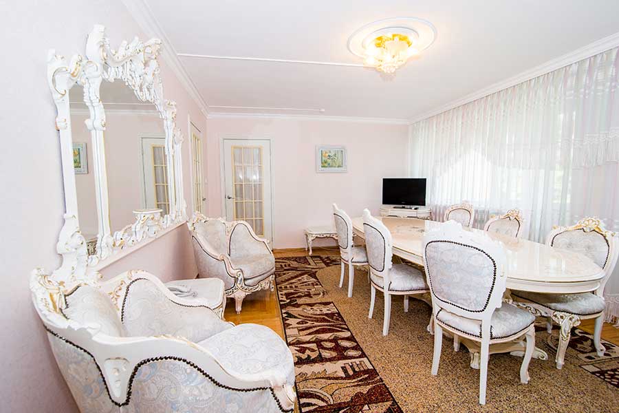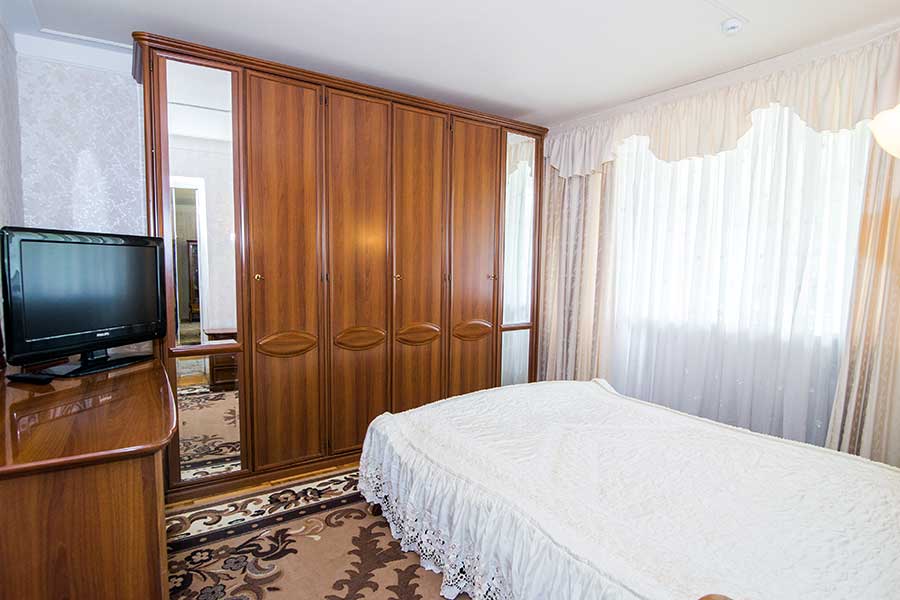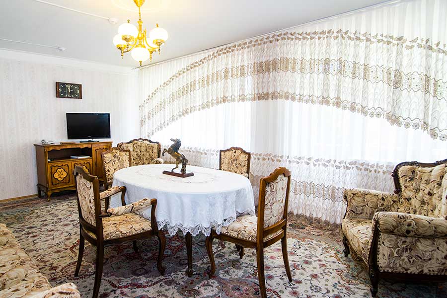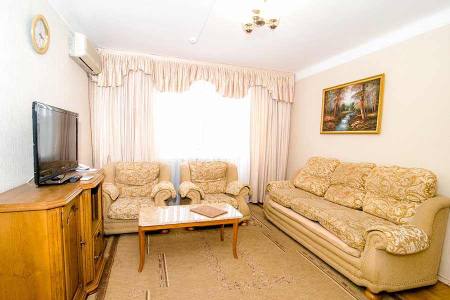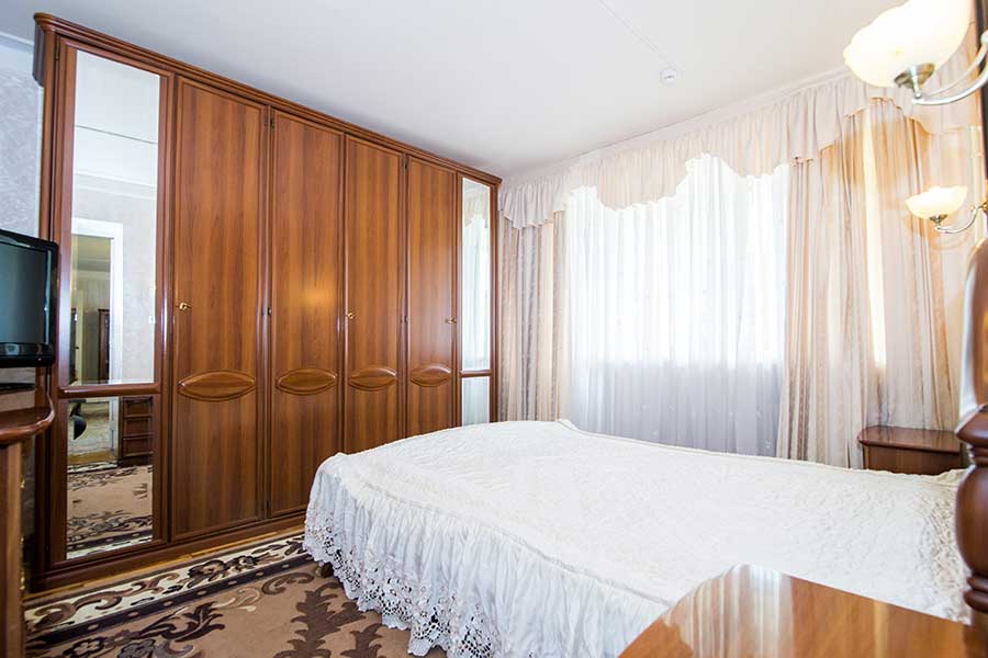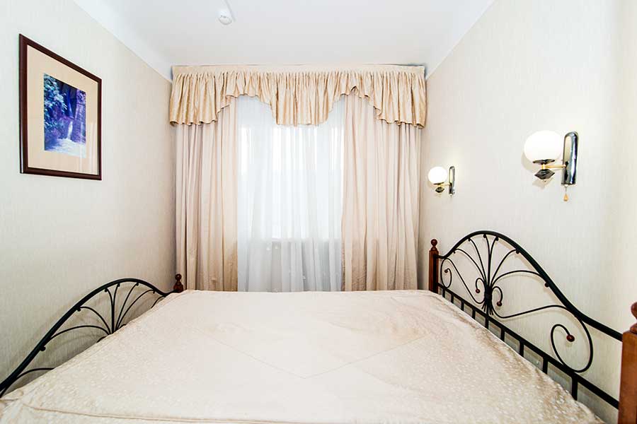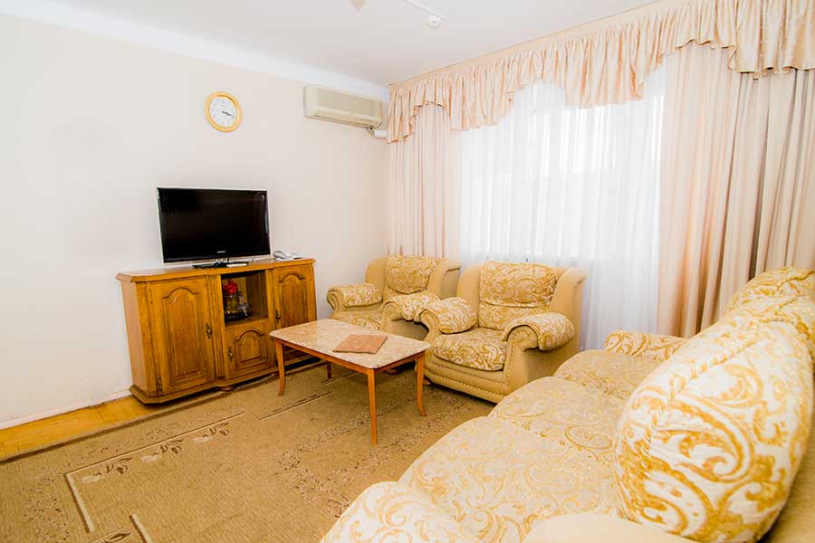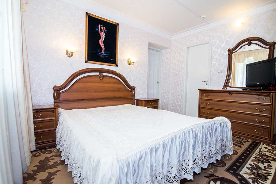 Большой двухместный номер с двуспальной кроватью и мягкой мебелью. Номер с балконом, состоящий из спальни, гостиной и собственной ванной комнаты, оформлен в спокойной цветовой гамме и идеально подходит для комфортного отдыха и релакса. Номер рассчитан на проживание 2-4 человек.