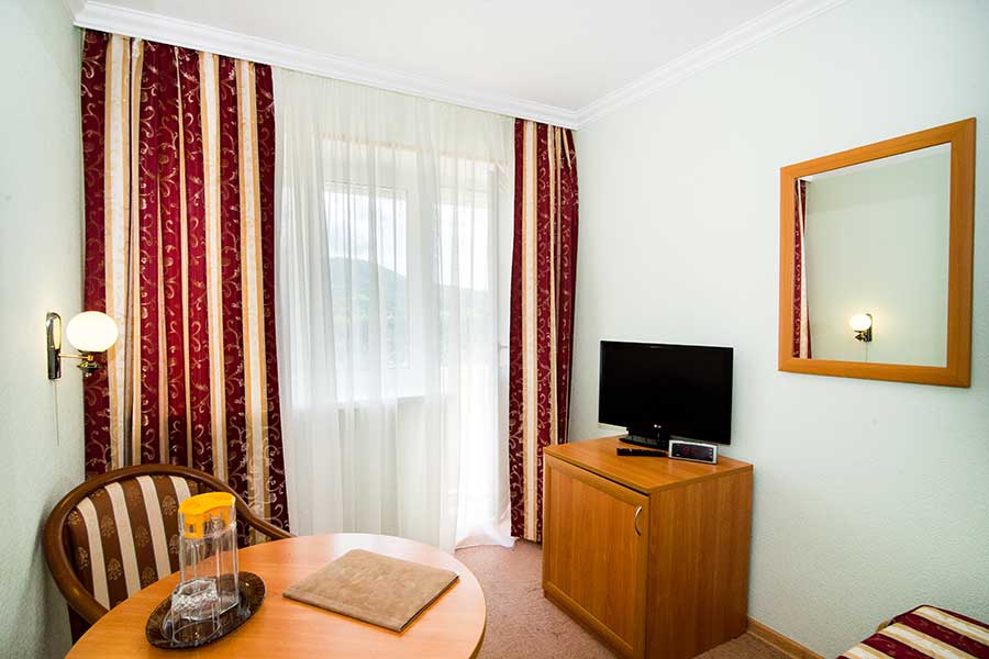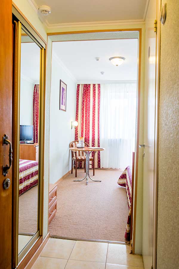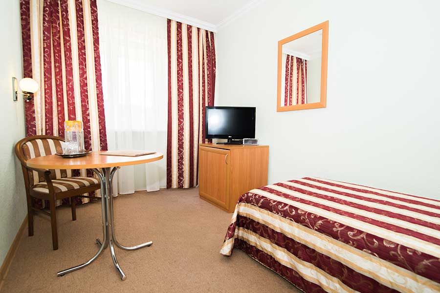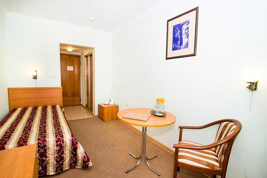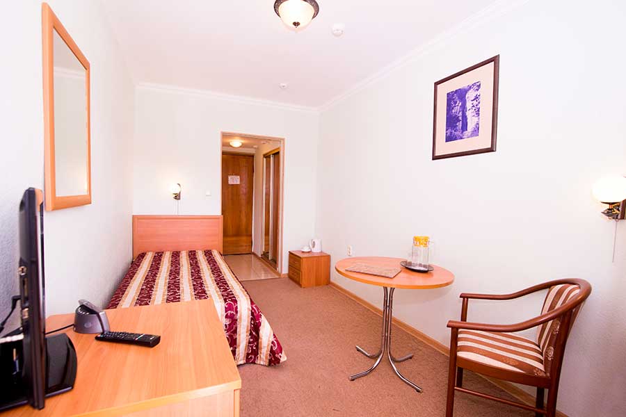 Уютный номер с одной кроватью. Включает спальню и отдельную ванную комнату, оформлен в светлых, расслабляющих тонах. Номера этой категории имеют балкон с видом во внутренний дворик.